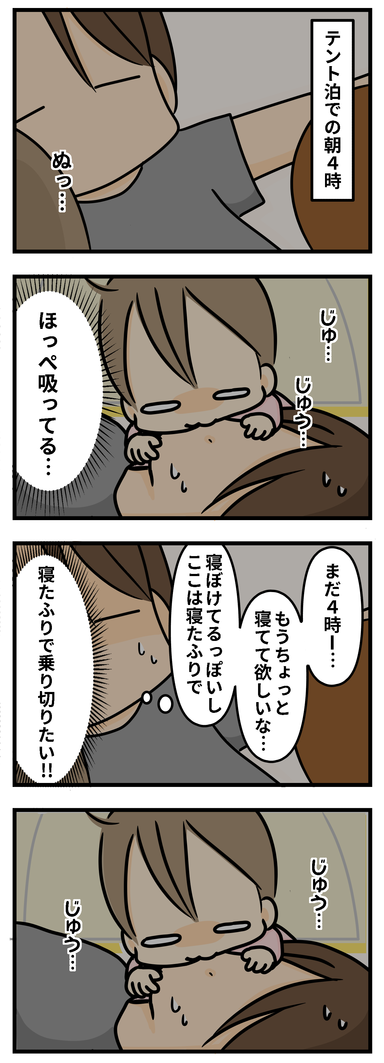 テントでもまあまあよく寝てくれましたが…