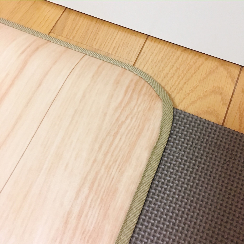 質問なんですが、フロアマットはどこで買いましたか?木目調で本物のフローリングに似てるので、我が家にも欲しいなぁと思いました。
