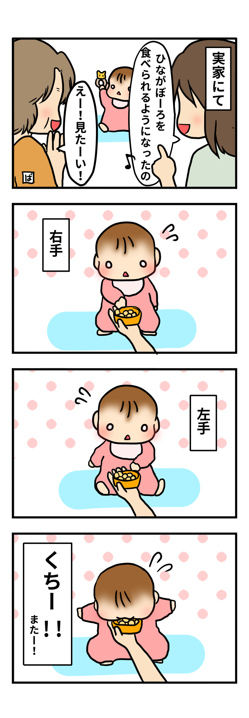 2015年05月31日 実家にて、ぼーろ カテゴリ : ひな0歳6ヶ月~11ヶ月離乳食 ママブロネタ「日々のできごと」からの投稿家から車で30分くらいなのでたまに実家に遊びに行ってますこの後ちゃんと、おててでボーロを食べるところ披露できました(´ω`;)***ブログランキングに参加していますポチッと押して応援して下さると嬉しいです(画面が切り