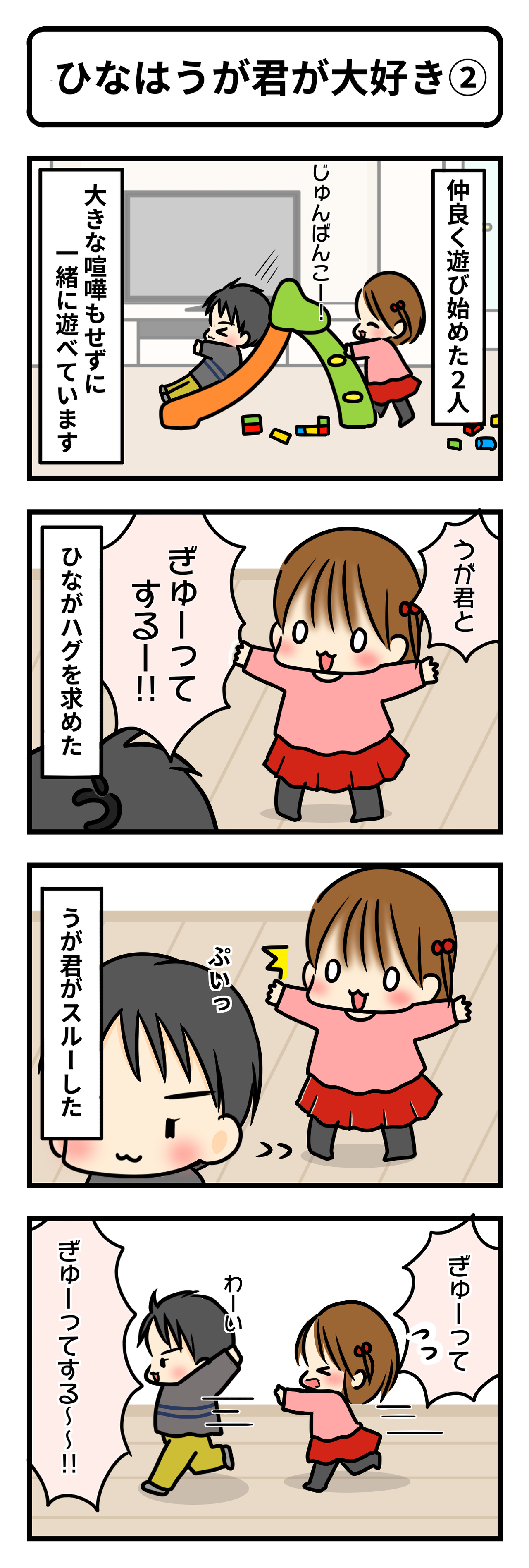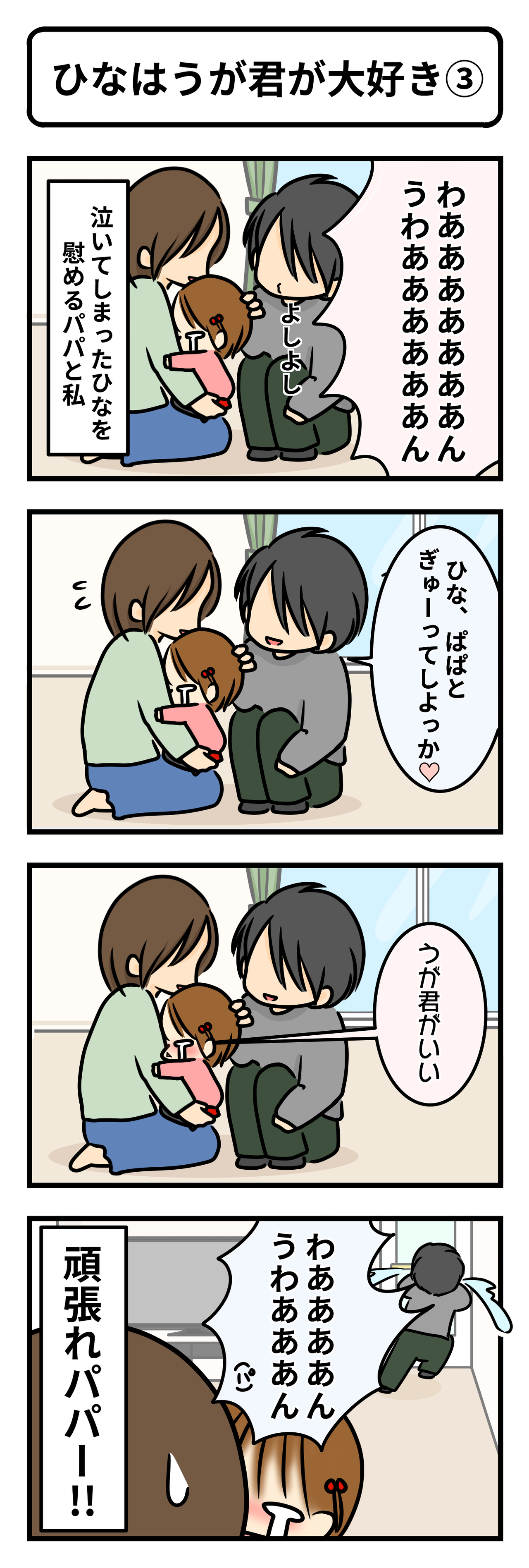 2017年03月31日 ひなはうが君が大好き③ (終) カテゴリ : ひな2歳〜 ※ひな2歳7ヶ月 ①②からの続きでうが君編 最後です〜 すんすん泣きながら「うが君がいい…」と言われてしまいました(^▽^;) パパどんまい。 それから そこまでして!!!!!!!!!! そこまでしてうが君と「ぎゅ」したかったの…? (^◇^;) でも結局滑り台作戦