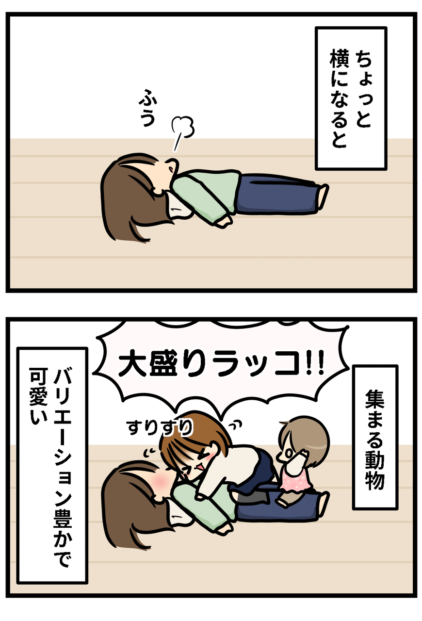 座ってほしい、でも膝なら食べてくれるならもういいか…という自分の葛藤も〜〜(ノノ)あールーあールー