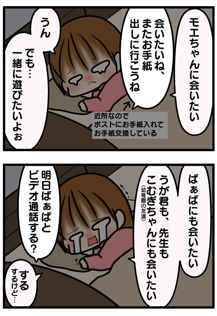 でもでも、そうじゃなかったんですね😭お友達や幼稚園の先生に会いたいのね😭お友達と会って遊ぶの我慢してて本当に偉いよ!素晴らしいです!