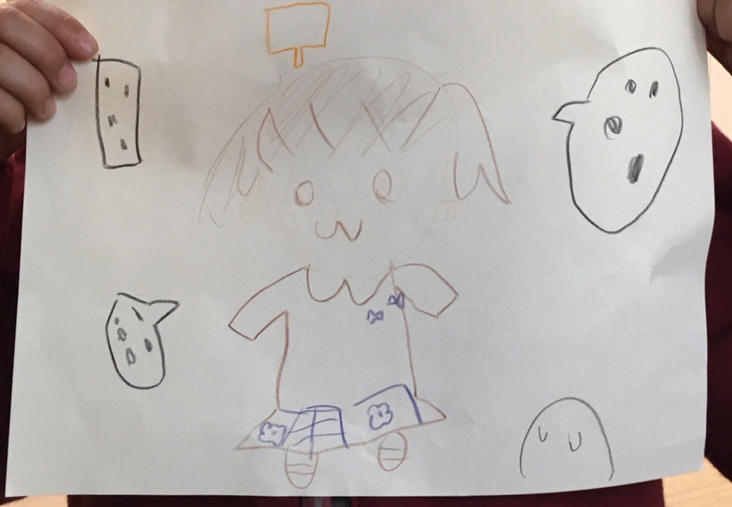 ひなちゃんの絵がとても上手で可愛くて癒されました。ドラえもんしりとりの時のお洋服でしょうか?
