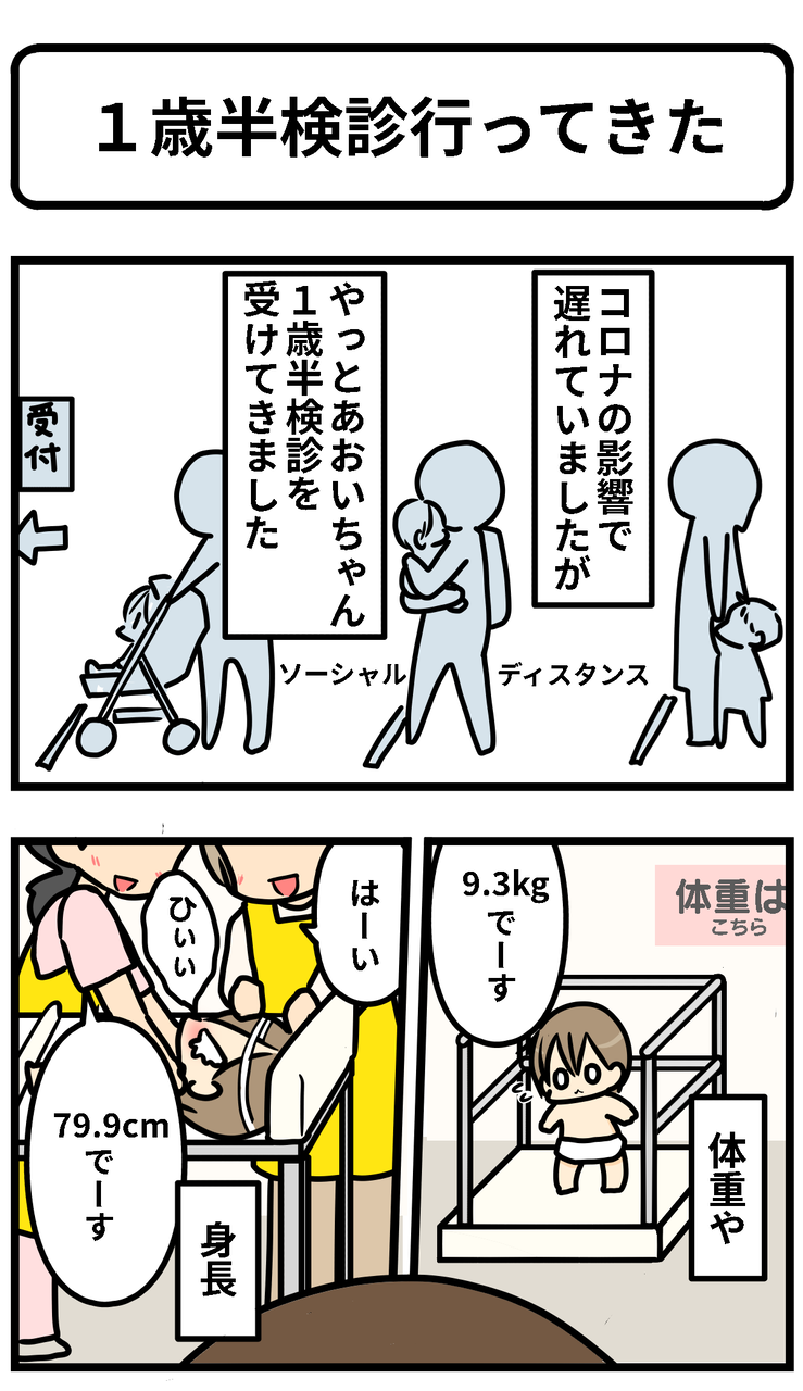 こちらの地域は1才半健診は1才8ヶ月でやるのでもう少し先ですが、やる内容すっかり忘れていたので助かりました!この自粛生活でただの通行人にまで人見知りしてしまうようになったので色々恐怖です(*_*)