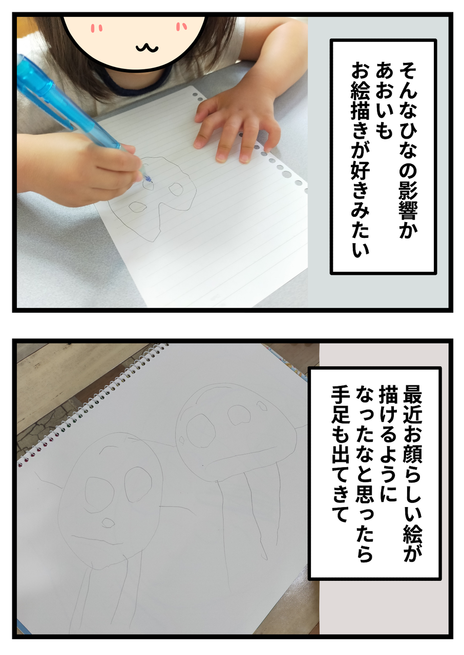 そしてあおいちゃん、2歳にしてペンの持ち方が美しくて驚きました!!お姉ちゃんやみんなのことをよく見てるんですね。
