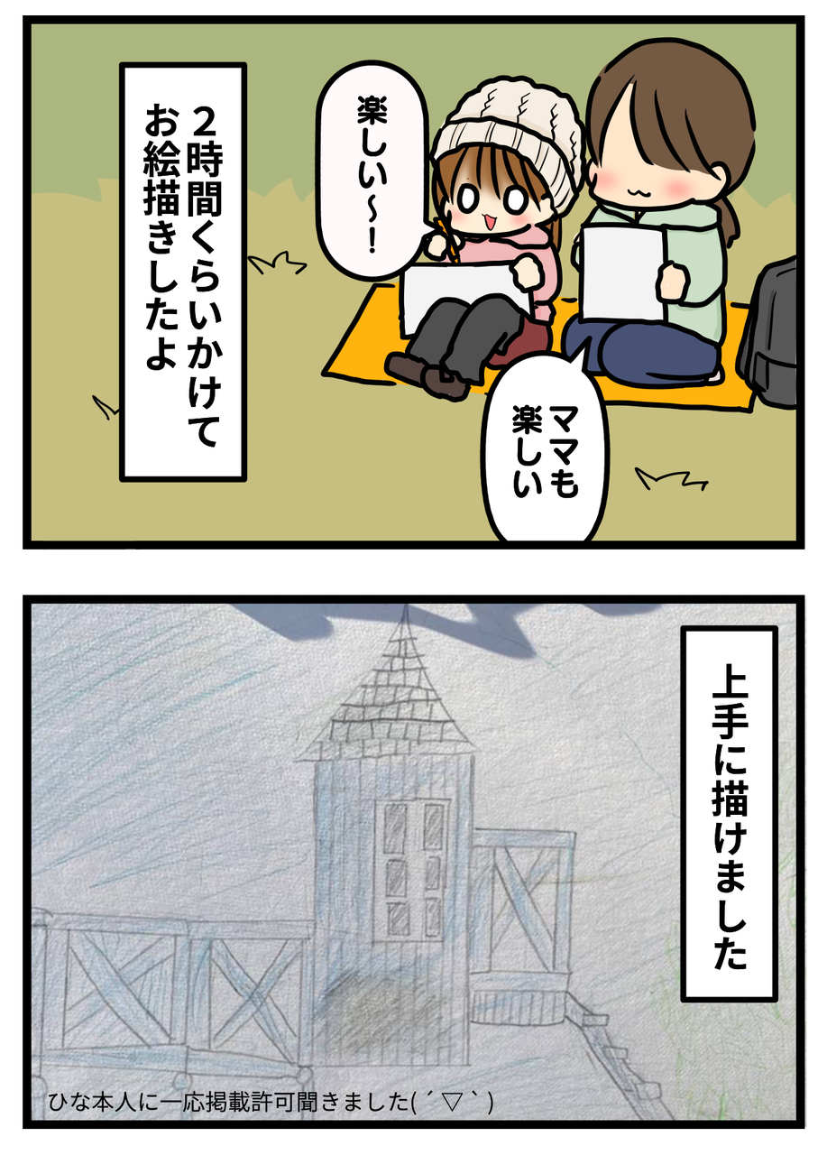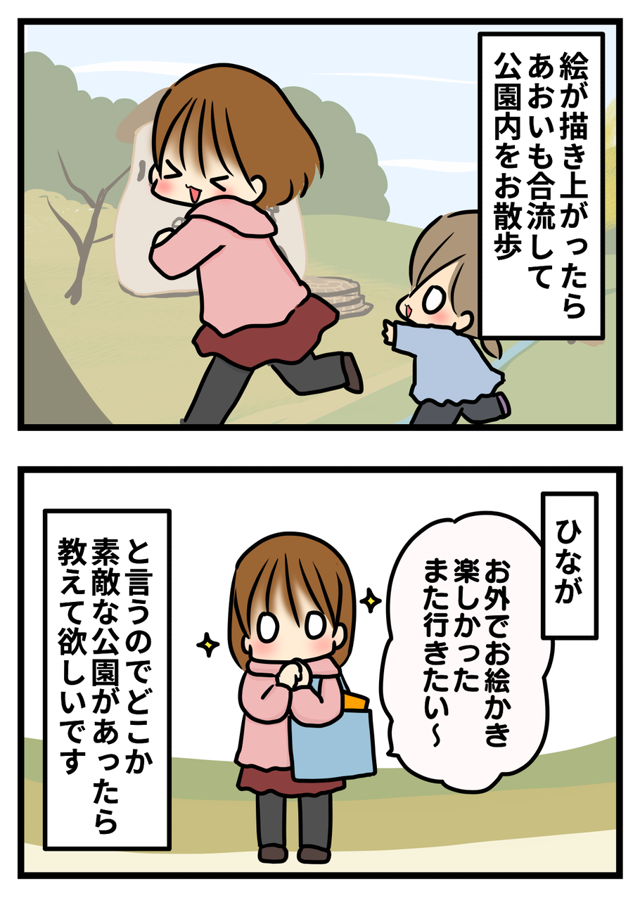 公園でお絵かき、ひながとっても楽しかったようで