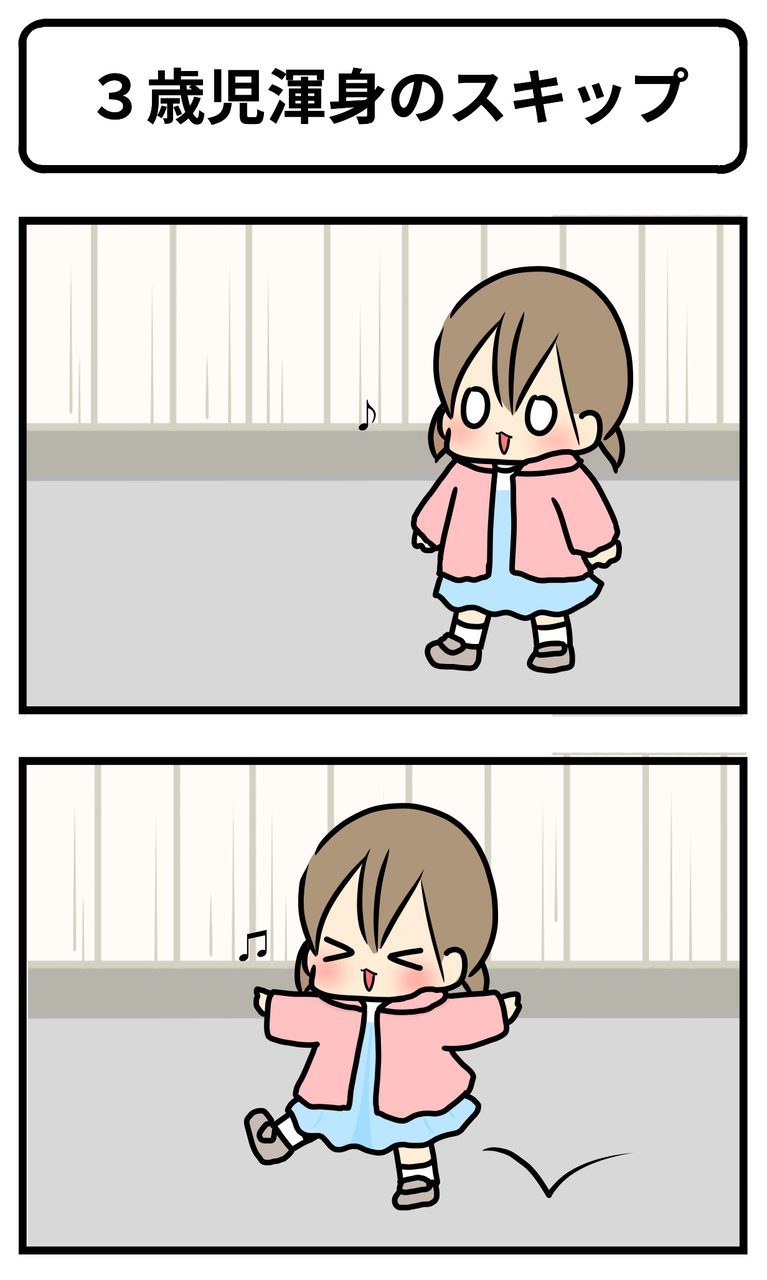 うちの子(6歳)、スキップはマスターしてしまったので、ツーステップ教えてみたんですが、再びこんな感じになりました笑