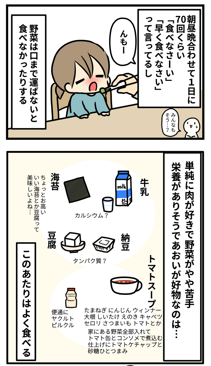(上の子食べない子だったのでレタスもしゃもしゃ食べるの見た時はギョッとしました、この年齢で食べる子供っているんだ…て笑)