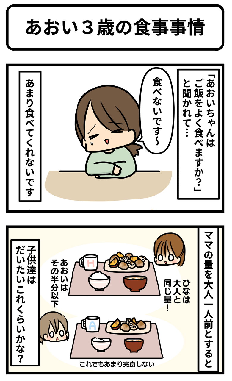 とはいえあおちゃんはまだ小さいですし、食べる量やお行儀なども中学生と同じでいいとはならないと思いますが…💦