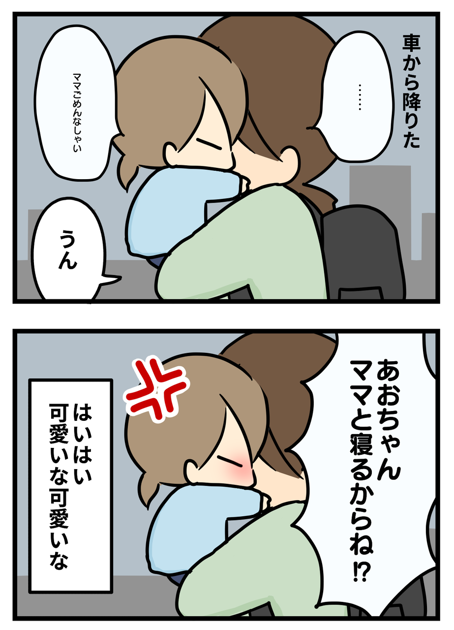 でもちゃんと謝れるのは偉いです。やっぱりママとも一緒に寝たいんですね(笑)。