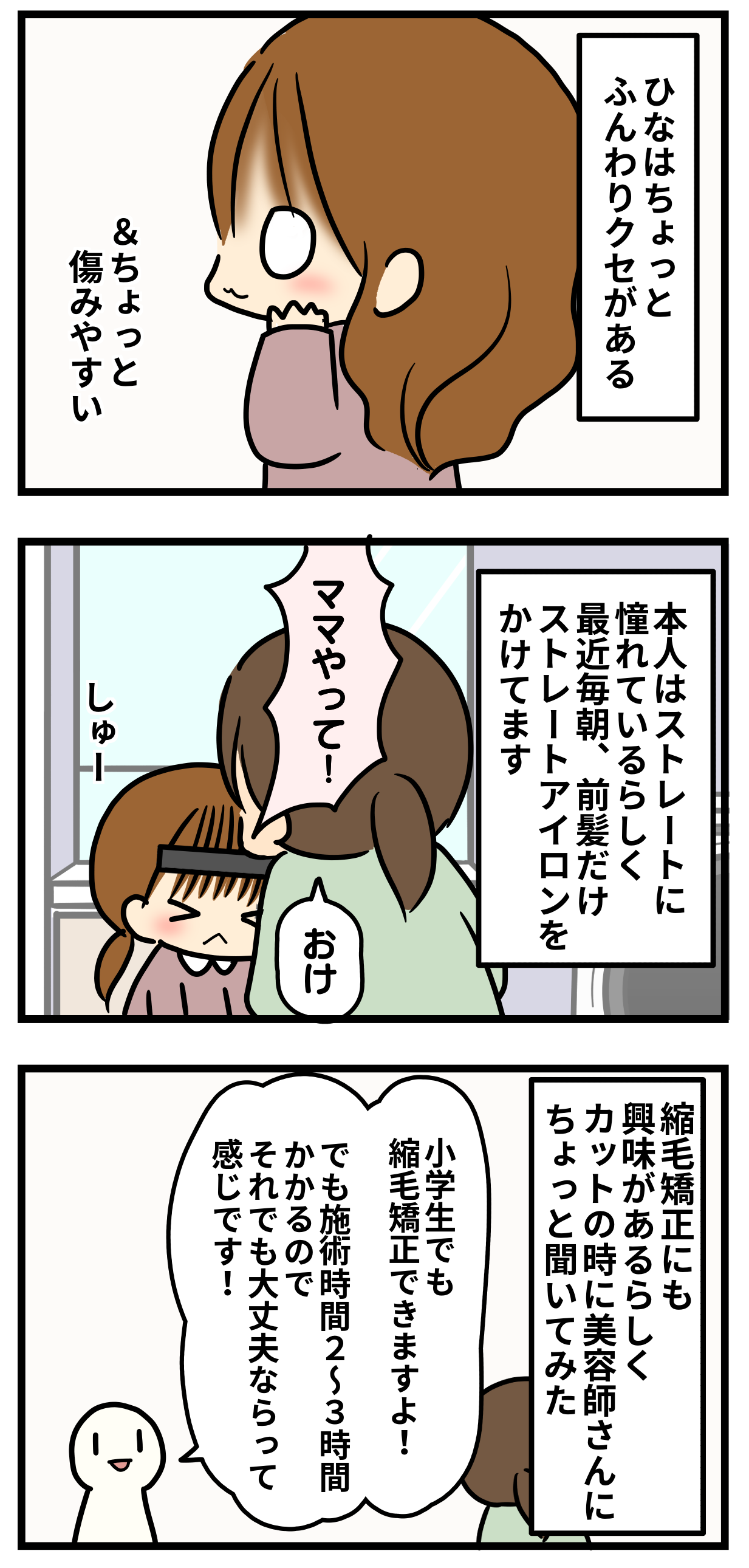 年長の娘もちょっとふんわりくせ毛なのでいつかストレートに憧れるのかな…