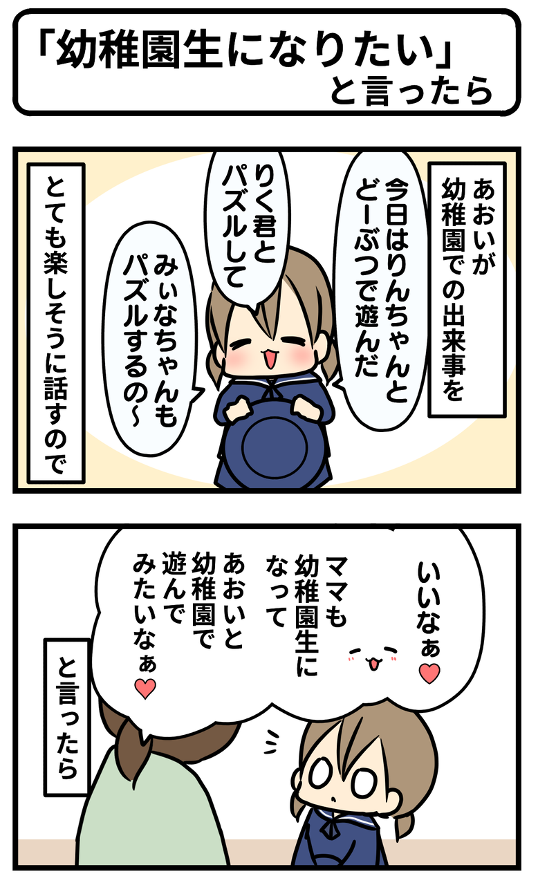 幼稚園生に私もなりたい。あおちゃんと一緒に遊びたい。