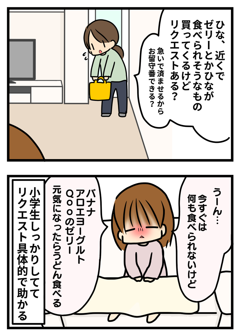 うちの2年生もQooゼリー、あとひたすらアイスを欲してました。発熱時はとにかく食べたがらないので、小さいアイスを特別に1日2個とか許してましたね😅