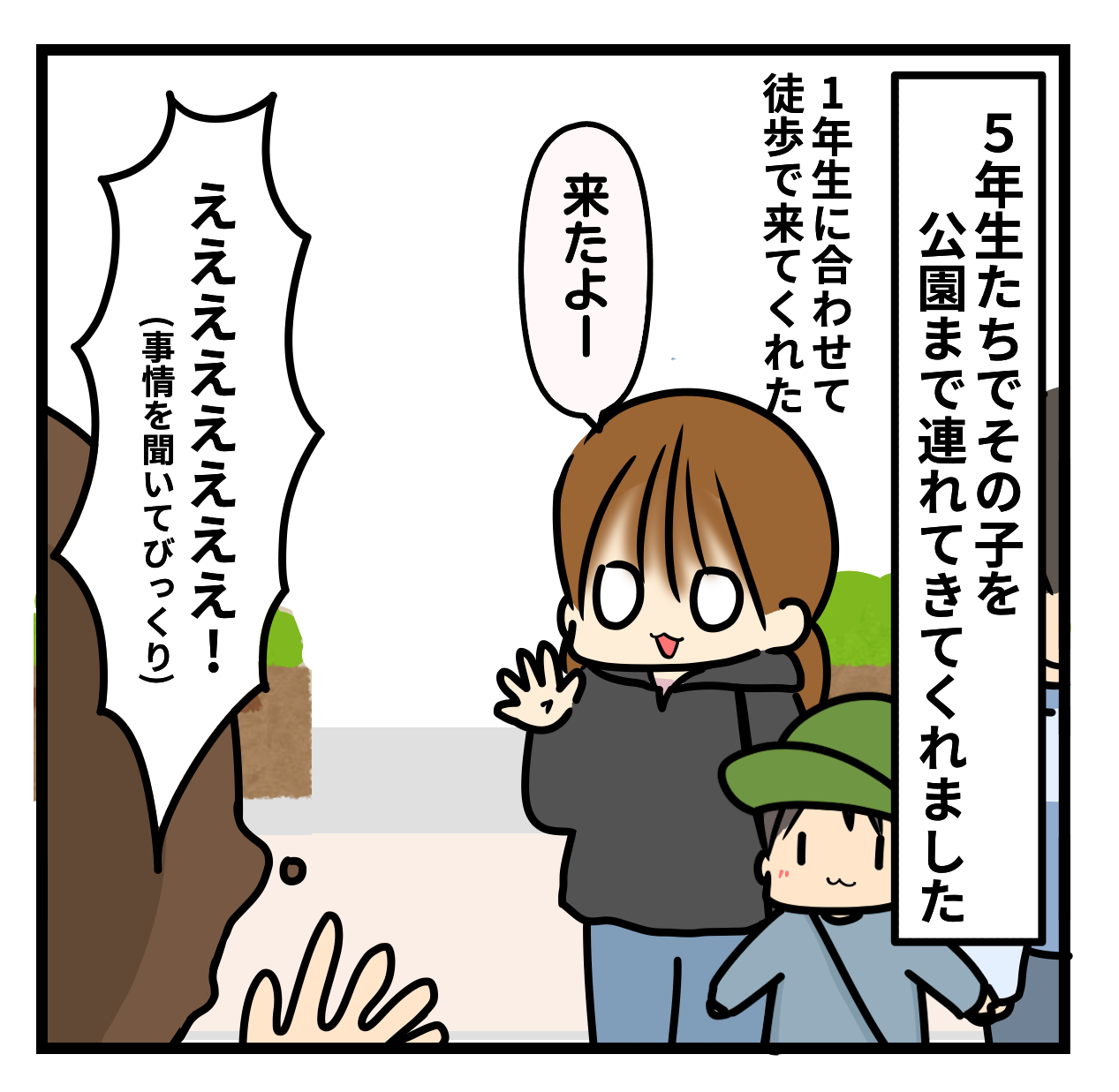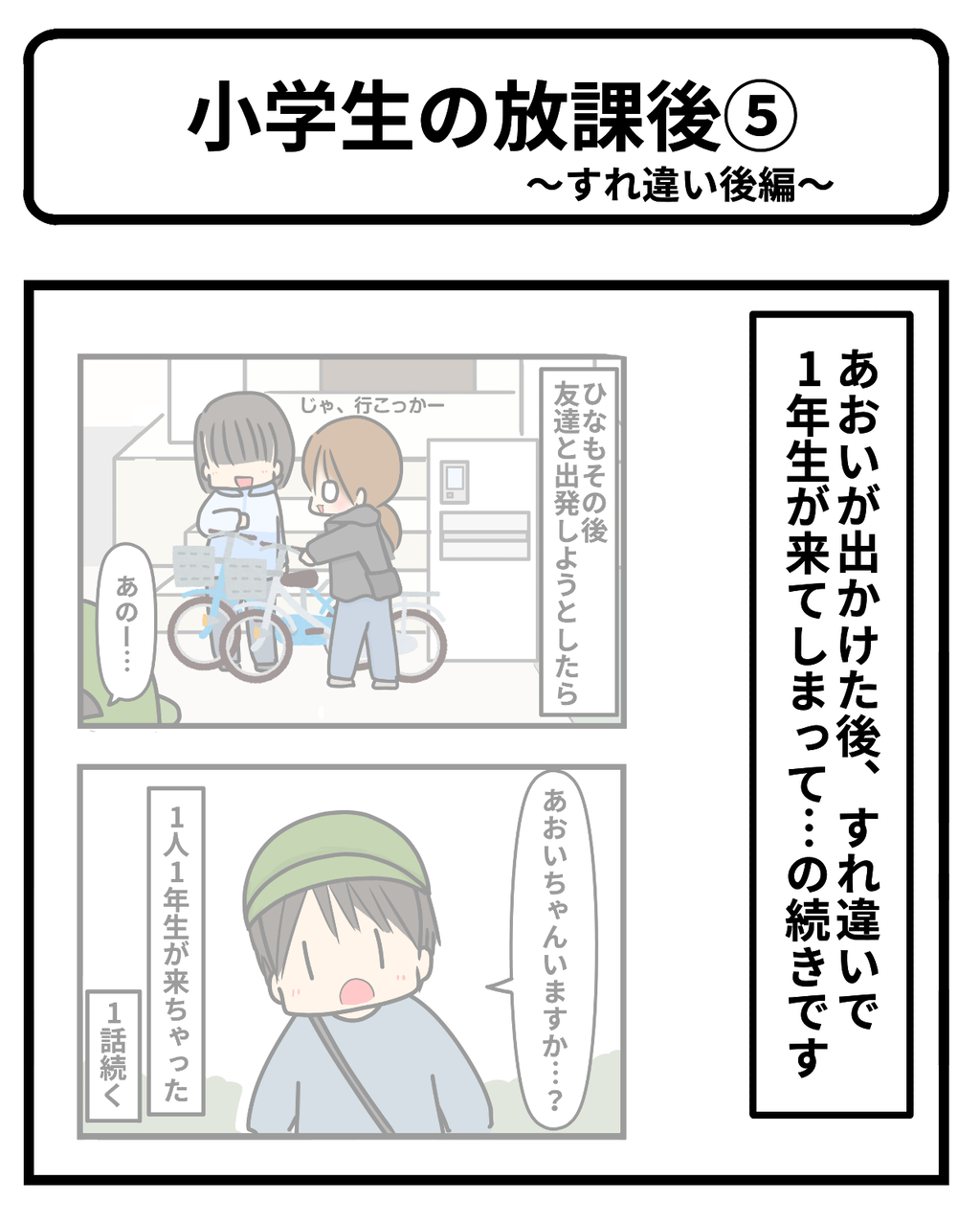 しかもひなちゃん達その子に合わせて自転車🚲ではなく徒歩👣💨で来るとは!!もう本当に感動ですね、その子も「あおいちゃんのお姉ちゃんて素敵な人だね」と思ったに違いないですね。