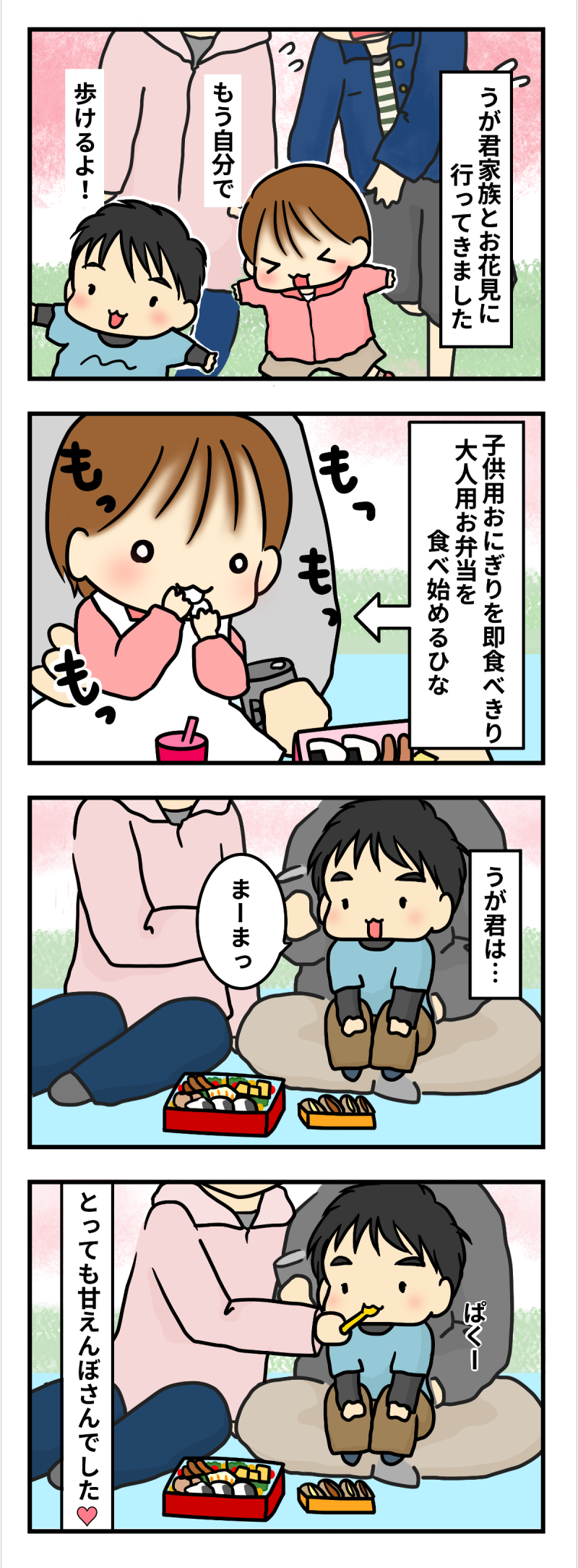 1年前のお花見に比べて2人とも大きくなりました♪