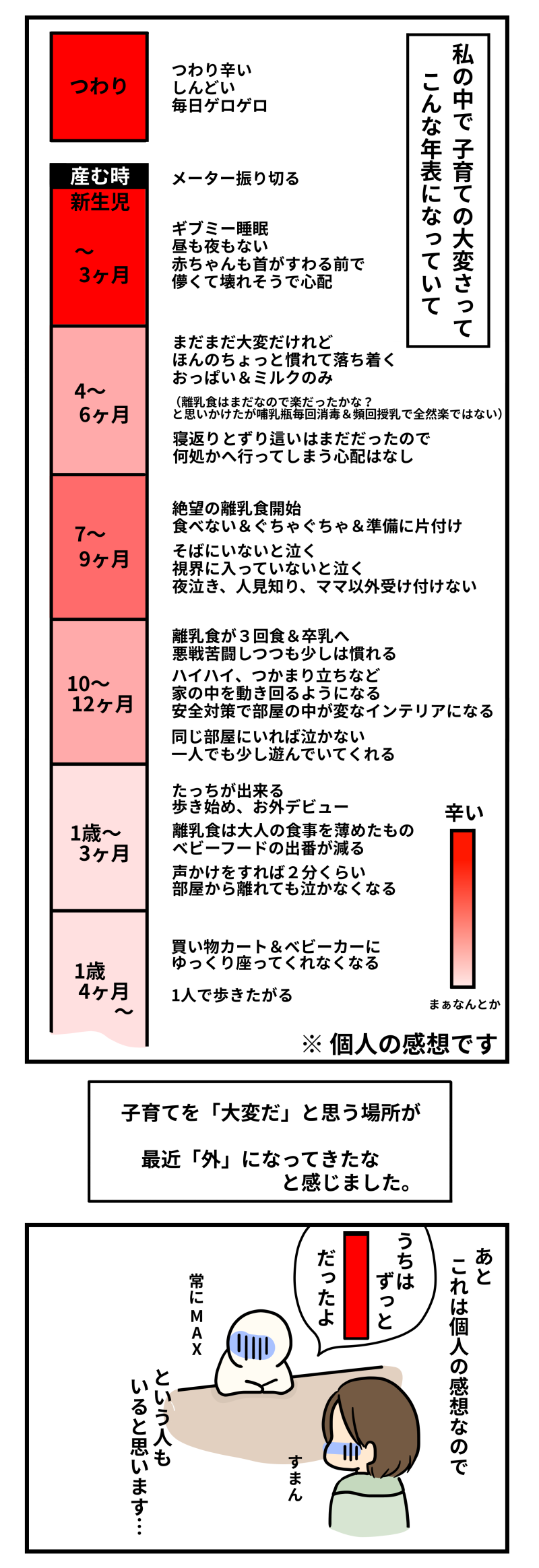 ここまでの感じはくりこさんの年表と私も感じ方としては似てるかなと思います(o^^o)ギブミー睡眠って表現に笑っちゃいました(笑)