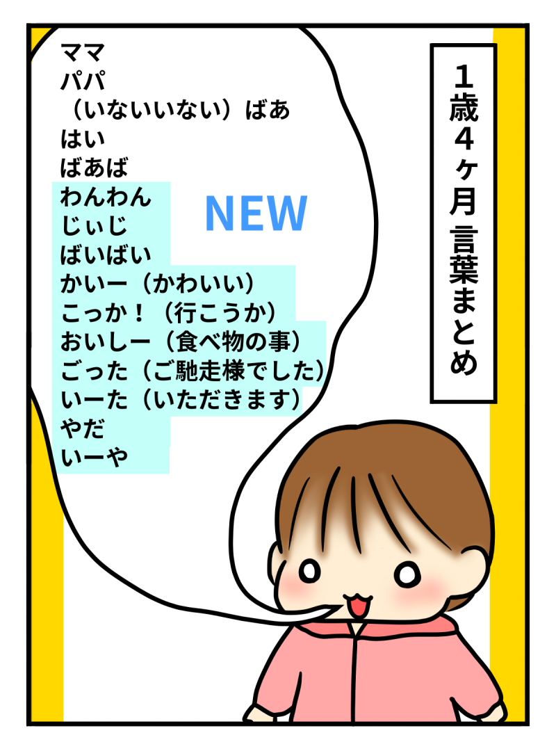 今月(月齢1歳4ヶ月)は急に言葉が多くなったので