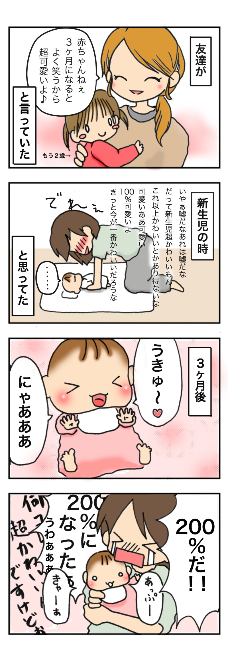 そして1歳になって歩くようになったら1歳が一番可愛くて、2歳になってよくしゃべるようになったら2歳が一番可愛くて、3歳になってお手紙とかかけるようになったら3歳が一番可愛くて…