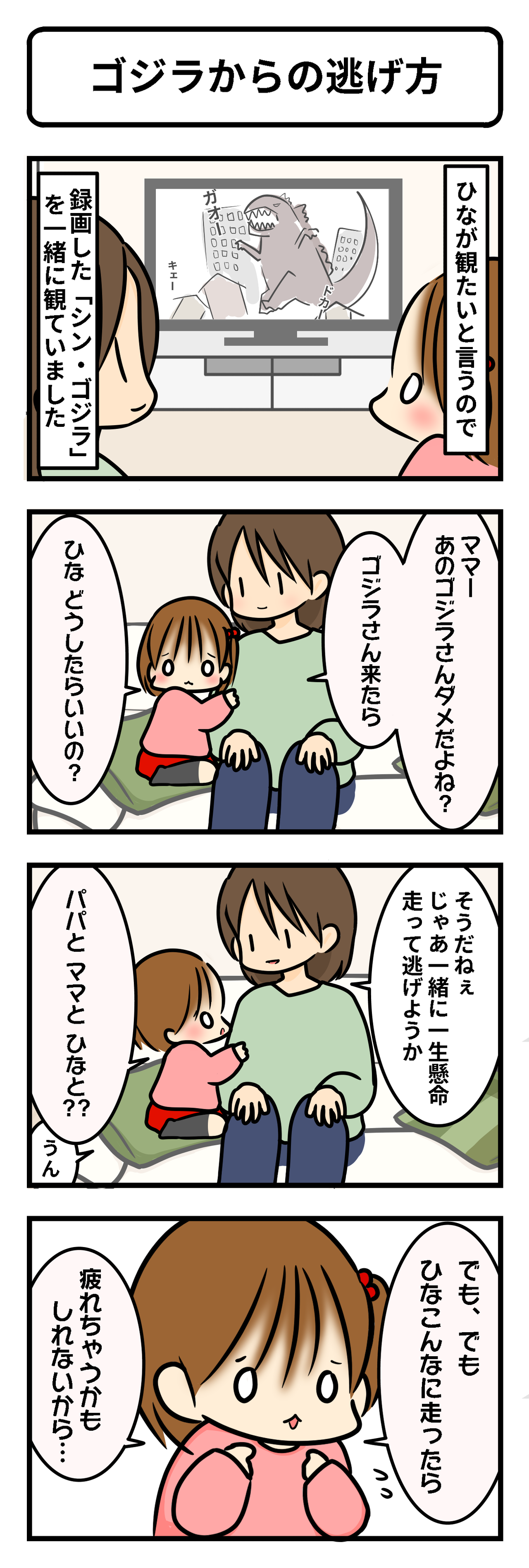 ゴジラから逃げる方法、そこまで考えてみてるんですね〜!でも逃げるのに寝るなんて 。笑